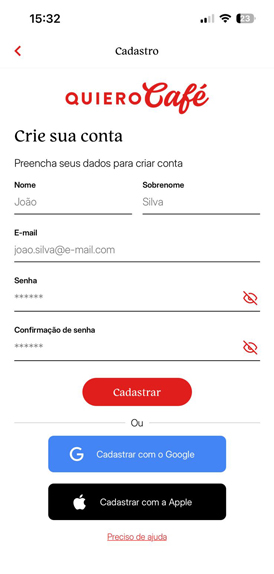 Baixe e cadastre-se no app Quiero Fidelidade.
