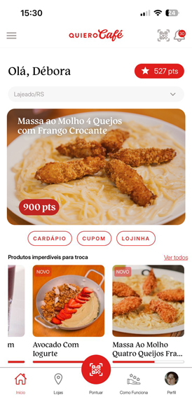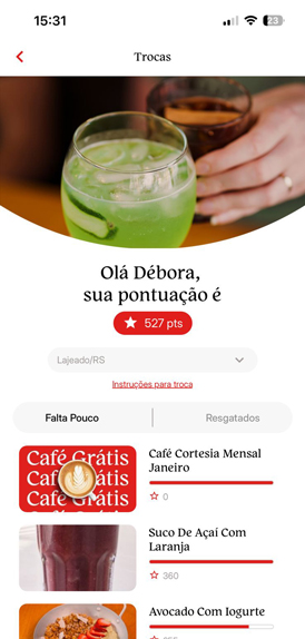 Você pode trocar seus pontos por itens exclusivos de nossa loja ou por produtos do cardápio.